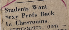 Morning Eagle-Tribune Clipping, “Students Want Sexy Profs Back In Classrooms,” March 9, 1961. Smith College Archives collections regarding Newton Arvin, Smith College Archive.