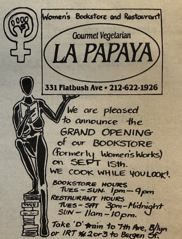 Big Apple Dyke News, which published their first issue in March of 1981, frequently advertised La Papaya and the events they hosted.