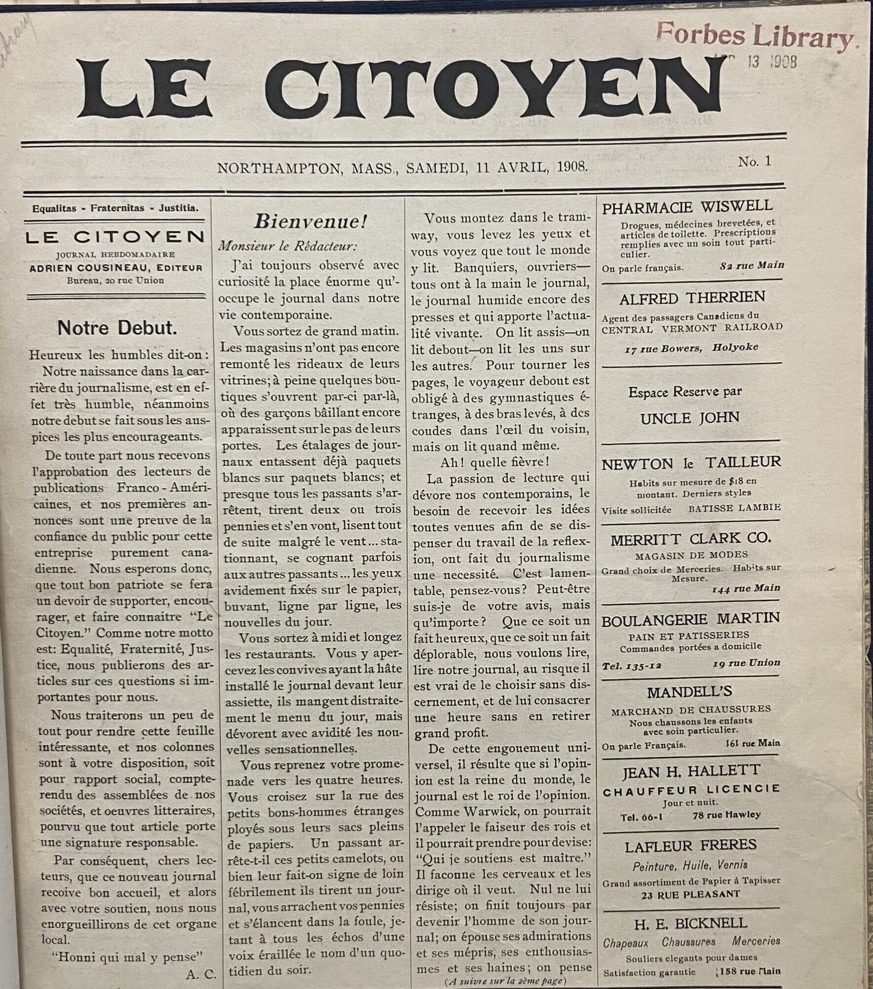 Entre 1838 et 1910, plus de 195 journaux francophones paraissent en Nouvelle-Angleterre. Ils sont des expressions de la culture franco-américain et la langue français et des organes importants pour les nouvelles et l’organisation des communautés franco-américaine.