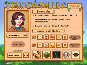 Hi! My name is Kendra (she/her) and I am from Connecticut! I live over in Sessions Annex, but I spend a lot of my time in Neilson or making coffee in my room. My favorite games are Stardew Valley, Minecraft, and Valheim. I can’t wait to meet you all, and learn what great games are out there!!
