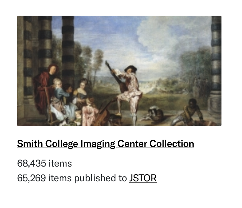The Smith College Imaging Center Collection is hosted on JSTOR and managed through JSTOR Forum.