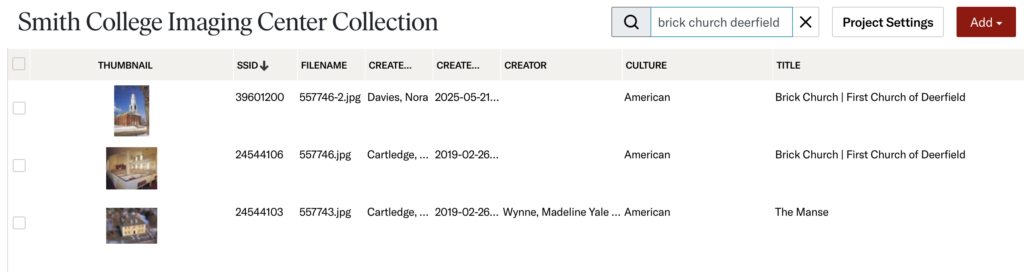 - Click on the Smith College Imaging Center Collection.