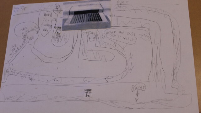 “The two ducks might’ve went down the pipe,” one student shared. “I’ve seen this kind of drain before,” her table-mate noted. “Some are just a grate with water underneath, and the water stretches really far. Maybe they went to the river.”