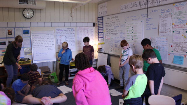 After they conversed about the “happy medium” of drain materials, students dispersed from their circle to ready themselves for recess, walking past a bulletin board entitled “Wonder Wall” and into their single-file line. On that wall were images taken by students at the Mill River on the Smith College campus during an investigation walk, one part of their annual study of rivers (for more on this, check out our coverage of the 2017-18 river unit here). In coming months, third graders will tie their Inquiry, Inc. studies to more expansive studies of rivers as ecosystems, and Ruth will bring her piloting experiences back to Water Inquiry, where student researchers will work with Professor Berner to hone their unit for implementation in other schools (yet another example of prototyping and revision).