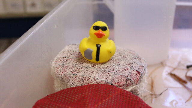 Among their suggestions for revision, students focused on the speed (velocity) at which water traveled through their drains. “There might be such a thing as too many materials,” Ruth summarized after hearing students’ talk about how they overcompensated for the problem, blocking water out of their drains along with ducklings. “We could’ve taken out the coffee filter because the water went slowly,” one group said. “We could’ve put fewer pipe cleaners in so the water could’ve filtered faster.” Similarly reflecting on the utility of materials, other students shared: “I think the cheesecloth wasn’t useful, but it wasn’t useless. I should’ve used more tape” and, “I’d take away the cheesecloth because if we didn’t stretch it out it’d be all soggy. I think they have a good reason for making them out of metal.”