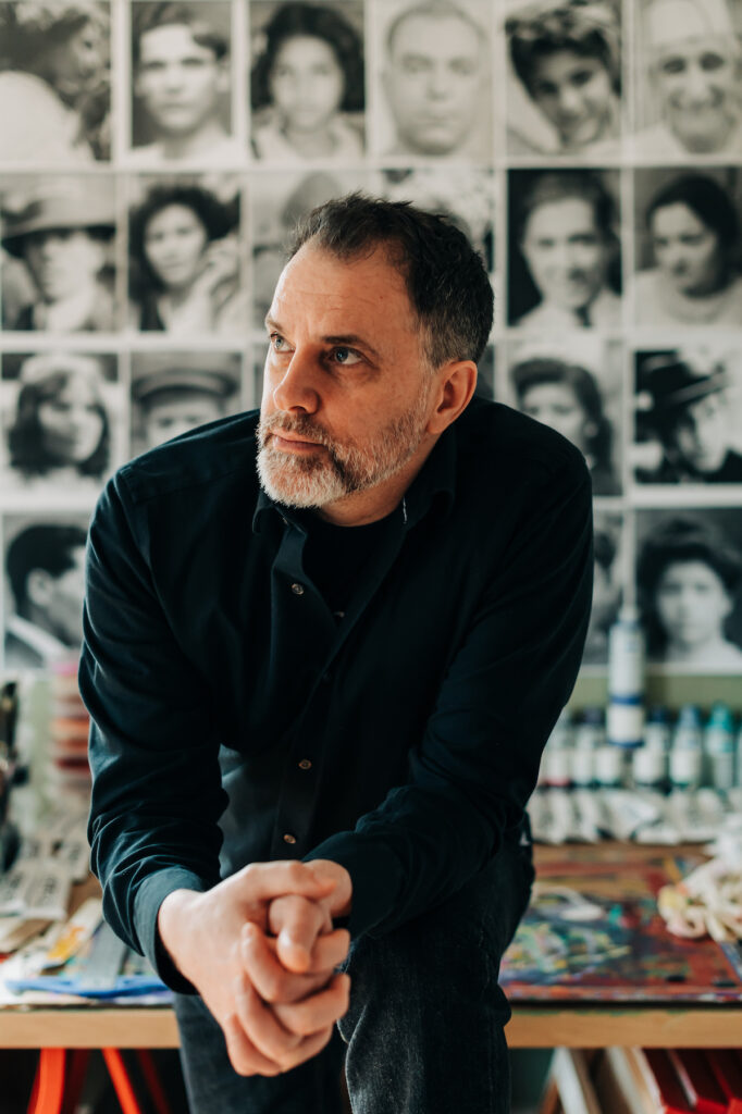 Mark Guglielmo (b. 1970, New York City) is a multidisciplinary artist best known for his layered figurative works that incorporate a diverse range of materials to critically engage with themes of race, class, migration, and power. Rooted in his New York upbringing, Guglielmo utilizes collage as a central element of his practice, connecting his art to his background in hip-hop music through techniques like sampling, truncating, and reconfiguring existing materials into new compositions. His significant projects include “Portraits of My People” (2021-2025), which honors his Italian lineage while addressing the complexities of identity and the fraught nature of race-making in America, and “Cuba in Transition” (2015-2019), his series of large-scale photo-collage portraits at the intersection of international relations and the personal/collective narrative. Exhibitions of his work have been organized at The Loveland Museum, Colorado, Villa Victoria Center for the Arts, Boston, Central Connecticut State University, Vermont Center for Photography, and The New York State Museum. Guglielmo is the recipient of awards from The Puffin Foundation, the Community Foundation of Western Massachusetts, Deerfield Academy TEDx Talk, Community Mural Institute Fellowship at Fresh Paint Springfield, and The Williston Northampton School Artist-in-Residence. A former rapper and music producer, Guglielmo aka Vesuveo rapped with Eminem on the Top 10 hit “Green and Gold” and shared the stage with KRS-One, Biz Markie, and Black Eyed Peas. He serves as Community Advisor for the Community Foundation of Western Massachusetts’ ValleyCreates Program, in partnership with MASS MoCA’s Assets for Artists. He lives and works in Western Massachusetts.