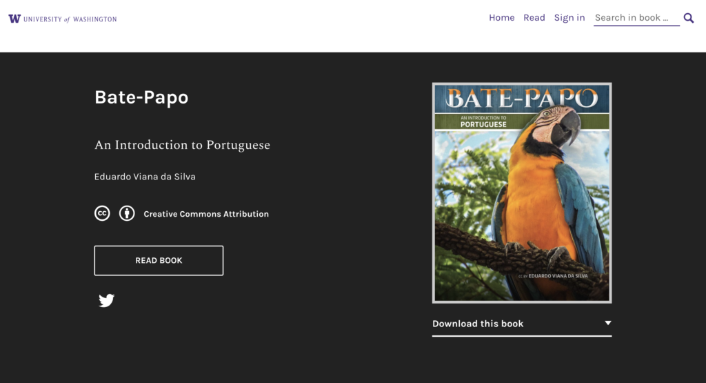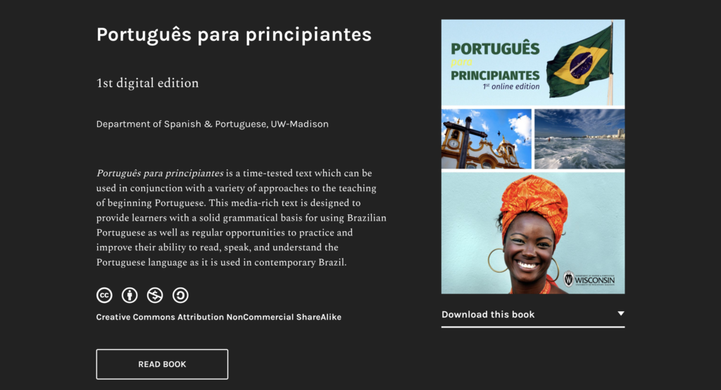 Another valuable free resources for Portuguese-learners are the online textbooks that are available. I have two textbooks shown below that can be great for intermediate and advanced students. One of the biggest benefits of having a virtual textbook is that it can be more interactive than a hard-cover and your students can take advantage of the listening and speaking parts of the textbook.