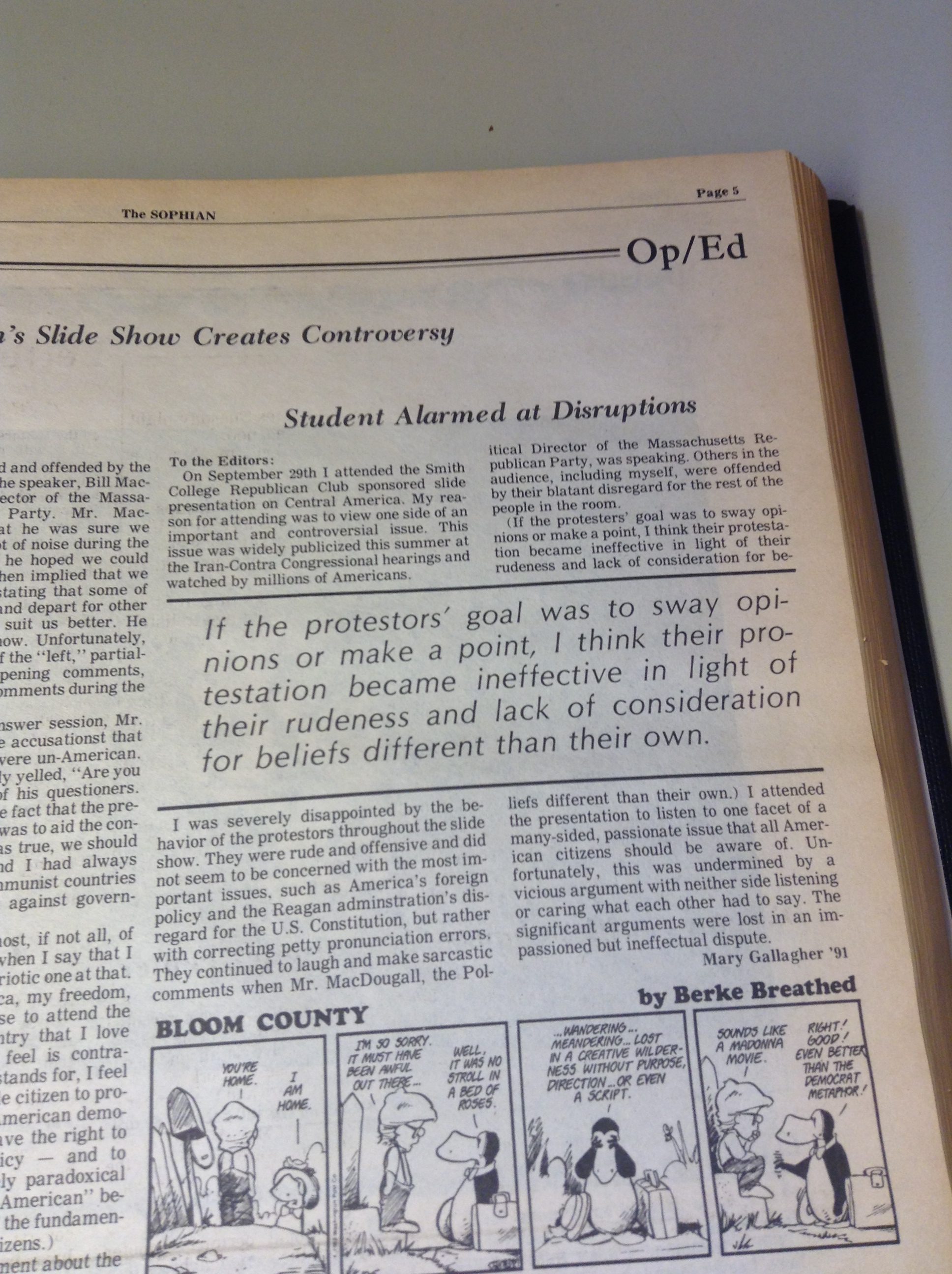 (De)segregation 1957 1958 1961 1963 1965 1966 1967 1968 1969 1970 1972 1986 1988 1989 1990 1994 1995 1996 2002 2012 2014 Abroad Affirmative Action Apartheid in South Africa Asian Students’ Association (ASA) Black Students Black Students' Alliance (BSA) Civil Rights Committee on Community Policy (CCP) Concerned Students of All Colors (CSAC) Hate Incident Institutional Action Institutional Discourse International Students International Students’ Organization (ISO) Korean American Students of Smith (KASS) Nosotras [LASO] Smith African Students’ Association (SASA) South Asian Students' Association of Smith (EKTA) Student Demands Student Protests Student Voices Vietnam War Weaving Voices