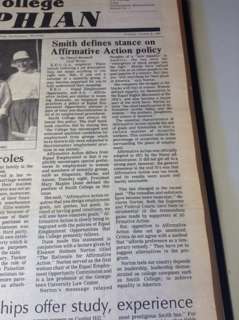 1987.10.08. Smith defines stance on Affirmative Action policy 1