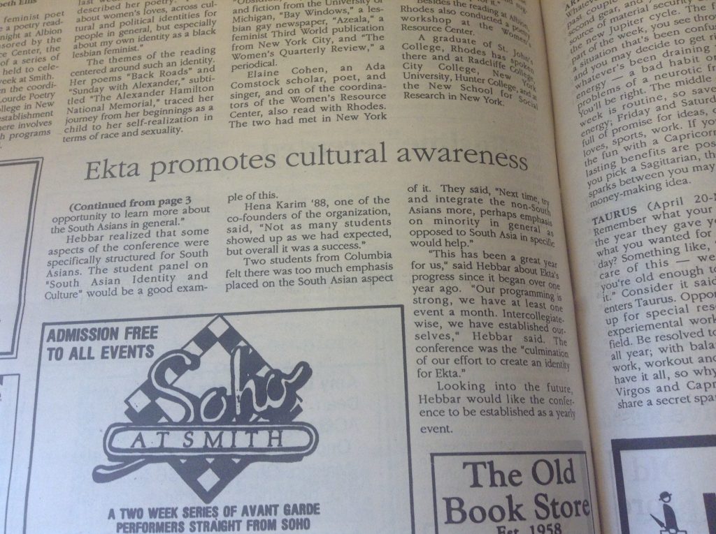 (De)segregation 1957 1958 1961 1963 1965 1966 1967 1968 1969 1970 1972 1986 1988 1989 1990 1994 1995 1996 2002 2012 2014 Abroad Affirmative Action Apartheid in South Africa Asian Students’ Association (ASA) Black Students Black Students' Alliance (BSA) Civil Rights Committee on Community Policy (CCP) Concerned Students of All Colors (CSAC) Hate Incident Institutional Action Institutional Discourse International Students International Students’ Organization (ISO) Korean American Students of Smith (KASS) Nosotras [LASO] Smith African Students’ Association (SASA) South Asian Students' Association of Smith (EKTA) Student Demands Student Protests Student Voices Vietnam War Weaving Voices