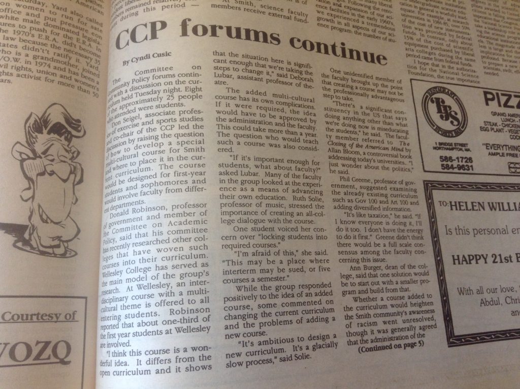 (De)segregation 1957 1958 1961 1963 1965 1966 1967 1968 1969 1970 1972 1986 1988 1989 1990 1994 1995 1996 2002 2012 2014 Abroad Affirmative Action Apartheid in South Africa Asian Students’ Association (ASA) Black Students Black Students' Alliance (BSA) Civil Rights Committee on Community Policy (CCP) Concerned Students of All Colors (CSAC) Hate Incident Institutional Action Institutional Discourse International Students International Students’ Organization (ISO) Korean American Students of Smith (KASS) Nosotras [LASO] Smith African Students’ Association (SASA) South Asian Students' Association of Smith (EKTA) Student Demands Student Protests Student Voices Vietnam War Weaving Voices