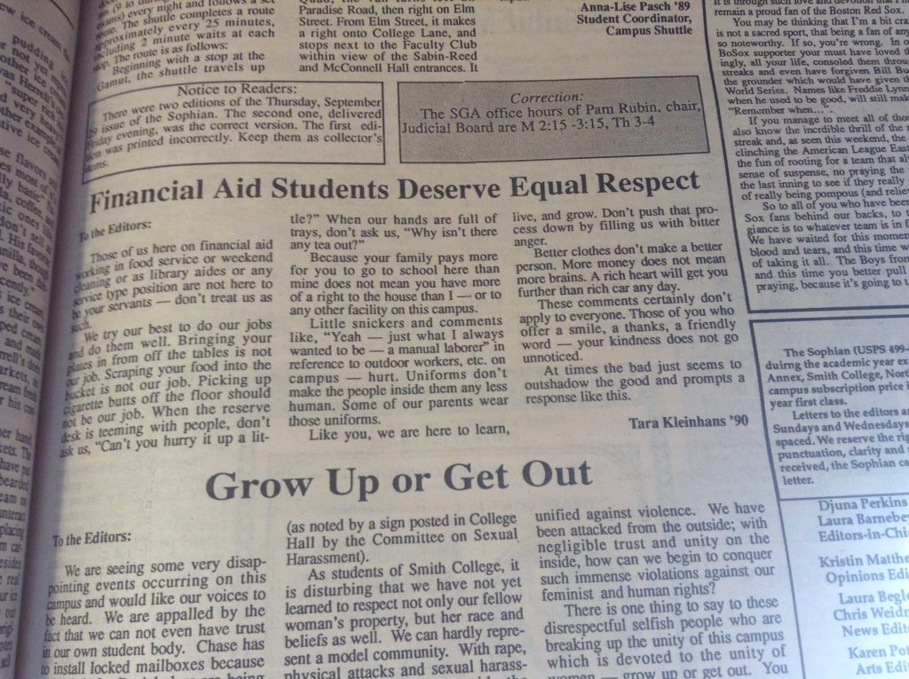 (De)segregation 1957 1958 1961 1963 1965 1966 1967 1968 1969 1970 1972 1986 1988 1989 1990 1994 1995 1996 2002 2012 2014 Abroad Affirmative Action Apartheid in South Africa Asian Students’ Association (ASA) Black Students Black Students' Alliance (BSA) Civil Rights Committee on Community Policy (CCP) Concerned Students of All Colors (CSAC) Hate Incident Institutional Action Institutional Discourse International Students International Students’ Organization (ISO) Korean American Students of Smith (KASS) Nosotras [LASO] Smith African Students’ Association (SASA) South Asian Students' Association of Smith (EKTA) Student Demands Student Protests Student Voices Vietnam War Weaving Voices